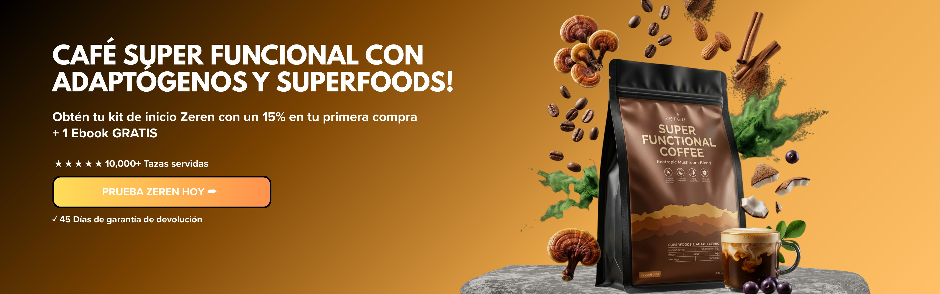 Beneficios. Beneficios. Beneficios. Con menos de la mitad de la cafeína del café normal, el café de hongos ofrece una gran cantidad de beneficios para la salud, como mayor calma, concentración, ausencia de nerviosismo, energía sostenida sin bajones, refuerzo del sistema inmunitario, salud intestinal y un tránsito digestivo tranquilo. Además, los hongos funcionales ofrecen beneficios para optimizar el funcionamiento del cuerpo y el cerebro gracias a sus propiedades antioxidantes, antivirales y antimicrobianas.